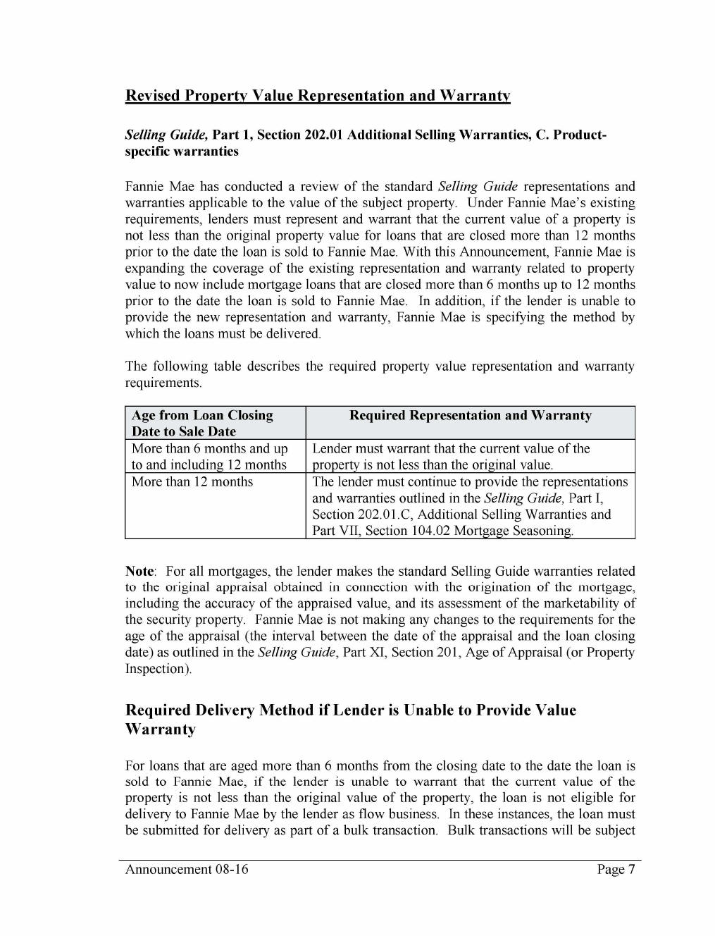 Value Representation and Warranty Requirements